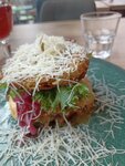 Отличный салат. Прекрасный кофе. Потрясающе милые молодые ребята - официанты. Здесь мне сказали, можно договориться и поплавать на сапах, но, правда минимум на 3,5 часа. Мне многовато. Гамбургер фирменный очень красив с посыпкой из тертого сыра. Вместо булочки - картофельные котлетки из тертой картошки - вкусно. Котлета кажется из рубленого мяса. Великолепна. А дальше для моего гастритного животика грусть-тоска. Очень много жирного, маслянистого. Я бы попросила сделать вариант "для нежных девочек", чуть более постный. Меньше масла и больше салата. А идея классная. Думаю, мужчина съел бы за мгновение. А я привиреда. Есть столики и на улице. Вокруг тишина. И еще несколько кафешек.