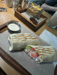 Хорошее мясо, много овощей, мягкая пита, правильная картошка и вкусные соусы - ничего заумного, быстрый и приветливый сервис, чистый туалет, приличный для такого места кофе. Просто супер!