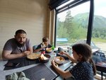 Замечательно, что на такой высоте есть кафе. Можно питаться, живя в палатке. Есть вай фай и это спасение, так как мобильная связь не ловит ни у одного из операторов. Горный чай великолепный, подача блюд быстрая. Красивый интерьер. Цены не космические, всего в 1,5 раза выше, чем в Архызе. Из минусов очень пересоленная еда. В разные дни брали хычины с сыром, оба раза были пересолены (с мясом хычин был нормальным). Шорпу я тоже не смогла съесть из-за дико соленого бульона. Ну, и туалет на улице расстраивает. Поэтому снижена 1 звезда.