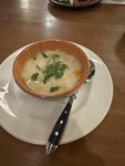 Пришли на обед в 12 часов. Взяли 1 бизнес ланч и еще несколько позиций из меню. К бизнес ланчу принесли булочку «Пури» с соусом сырный суп с курицей 👍 только он конечно больше куриный чем сырный но вкусный и на такой объем много куриного белого мяса. Овощной салат с брынзой был как обычный салат все хорошо но… Как и во всех грузинских блюдах много кинзы. Если вы не любитель то лучше сразу предупредить. Официант Дмитрий был очень внимательным обслуживание понравилось так же как и блюда.