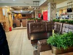 Место хорошее,слов нет.И персонал тоже добродушные.Готовят вкусно ,еда разнообразная.Много чего есть на выбор.Столы большие а сидишь в мягких диванах. Что касается цены то я немного ошалел.Попросил риса с гуляшом салат и чай.Мне это вышло в 870р.Гуляш на 500с лишним.Я по стране катаюсь но тут меня обули. В туалете продают или пытаются продать всякую ерунду.М туалет акурат напротив кассы, где женьщина сидит.Которая без чека не пустит тебя в туалет.А так на сег день 25р. Незнаю почему но общую входную дверь на М открыли и подперли ведром.Кабинки малюсинкие.В некоторые моменты головой бьешся об дверь.Один минус за цены в кафе,второй за туалет.А так в целом почти норм.