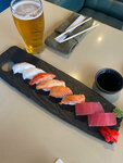 Такого разочарования в японской кухне ещё не встречала. Суши- палтус деревянный, краб сухой, сёмгу подают с тешей+ кусок кривой. Сашими из осьминога просто деревянное.Сашими из тунца нарезано толстыми кусками и криво. Вино- по бокалам было только 2 красных и одно игристое, белого нет. Пиво- разливного только два вида светлого, темного нет. Официантка максимально безучастная, после принятия заказа, не повторила его, из-за чего позже возникло недоразумение по суши. Интерьер симпатичный, но его вовсе не замечаешь, когда еду и обслуживание можно оценить максимум в одну звезду.