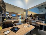 Отличное расположение. Большая парковка. Вкусная еда на любой вкус. Также вкусный кофе, безалкогольные и алкогольные напитки. Сейчас делают спецпредложение - "Русская зима". Вежливый персонал. Уютная атмосфера в преддверии Нового года. Удобные кресла и диваны, столики есть как на 2 посетителей, так и на 4. При необходимости столы могут сдвинуть и может уместить большая компания. С удобствами посещаю этот ресторан когда приезжаю в Ростов-на-Дону. Рекомендую, не пожалеете.
