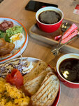 Приятное заведение со вкусными завтраками. Комфортный дизайн интерьера: мягкие диванчики по всему периметру, большие окна, тёплое освещение в центре зала. «Петербургское какао» – идеальный осенний продукт. А «Крок-мадам» не оставит равнодушными не только театралов. Надпись не стене «Место, куда хочется возвращаться» – определенно, не вольная фантазия дизайнера, а справедливый аналитический вывод.