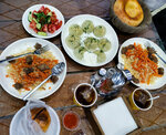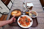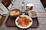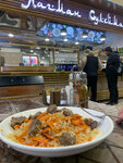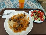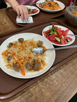 Специально пошла поесть плов. Порция большая ( 400 г), я съела всю!!!! Отлично приготовлено, подается с салатом и лепешкой. Я взяла еще зеленый чай, обычный, в пакетике. Хочу сказать, что клиентов много, приходят поесть, поскольку кухня аутентичная, в меню есть супы, выпечка. Спасибо хозяевам и поварам, они молодцы!!