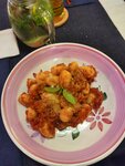 Рис с креветками, c белым вином и сливками, с сыром Пармезан, луком и лимоном