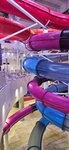 Вход удобный, кабинки большие для переодевания и куча шкафчиков для хранения, всё привязано к браслету. Поднявшись по лестнице попадаешь в душевые и после них сам аквапарк, бассейна просто поплавать нету, есть бассейн с волнами для детей, бассейн с течением для надувных кругов и 7-9 горок. Очереди огромные на двойные горки, на остальные надо постоять 5-10 минут. Берите ФАСТ ТРЕК если реально хотите покататься и особенно для ребенка, горки обычные, ничего сверхъестественного. Вода 29 градусов тепла. Внутри комплекса тоже тепло, лежаков достаточно, но полежать на них не получится, также есть кафе с конскими ценами, но поесть можно всё от роллов/пиццы до салатов или свежих фруктов. Термы маленькие, буквально комнаты человек на 10. Конечно, народу много, были в понедельник. Что бывает в выходные страшно представить. За 3-4 часа можно всё попробовать. Целый день тут не проведешь