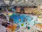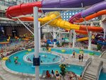 Хороший большой комплекс для посещения всей семьёй. Есть и детская зона, и кафе. Дети обожают плескаться на искустрювенной волне. На все аттракционы -горки можно только детям от 120 см. Детских горок нет, что считаю упущением. Есть термальная часть, где можно погреться в различных видах саун. В целом всё хорошо и приятно, лучше поход выходного дня запланировать с открытия, иначе ближе к часу-двум дня может стать слишком людно