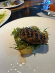 Ресторан хороший. Зал красиво украшен, всё выдержано в одной стилистике. Порции конечно ОЧЕНЬ маленькие, но еда действительно вкусная. Не помню точное название блюд, но рыба вкусная, подаётся со спаржей; салат из морепродуктов содержит в себе "подстилку" из горьких листьев салата, 3 креветки и несколько колец кальмара; кебаб состоит из 2 сосисочек и маленького куска лаваша. Я бы порекомендовала этому ресторану уравновесить соотношение граммов блюда и цены, сейчас получается очень маленькая порция и огромная цена за неё