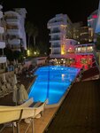 Если понимать, что ждать от отеля 4*, то всё вполне хорошо. Начну с плюсов: 1.расположение - отель очень удобно расположен в плане транспорта, аптек и магазинов. Есть возможность на автобусе уехать в разные концы, в том числе и в нова Молл, и в античный Сиде. До пляжа нужно прогуляться минут 15 либо доехать на шатле (ходит регулярно) 2.пляж и бар на пляже - достаточное количество лежаков, вход в море песчаный, в баре достаточно разнообразно кормят и пекут лепёшки. Напитки: пиво, чай, лимонад и сок 3.номера - достаточно просторные, всё работает, хоть и не «первой свежести». На счёт шума - номера, выходящие на дорогу не лучший вариант, там носятся всю ночь. Либо беруши в аптеке купить 4.еда - кормят разнообразно, но с корректировкой на 4*. Повара молодцы, постоянно что-то придумывают. В какие-то дни делают шаурму, то рыбу на гриле жарят, то ещё что-то. По утрам всегда свежие лепёшки пекут. Мороженое каждый вечер и сколько угодно. 5 десерты - тут выше всяких похвал, просто бомбические и разнообразные. 6 хороший бассейн с лежаками и горкой во внутреннем дворе Полотенца выдают для пляжа 7.пешеходная набережная в пешей доступности и идёт она до античного Сиде - шикарное место для вечерних прогулок По минусам: 1. С русским языком просто беда, учите немецкий, на нём тут все говорят, как на родном. С одной стороны и как бы и пусть, современные средства решают этот вопрос, но - вся анимация (её достаточно каждый вечер) на немецком языке! Поэтому вечером или на набережную, или в античный Сиде, или ещё различные варианты 2 курят везде где возможно - вокруг бассейна стоят столики, за ними сидят немцы и все курят, курят на пляже, курят на балконах. Причём курят не соски электронные, а сигареты, часто очень вонючие. Поэтому позавтракать (обедать, ужинать) за столиками вдоль бассейна могут только любители табачного дыма. На пляже с этим сложнее, но можно лежак утащить в самый конец пляжа В целом, отель может и не самый лучший, но идеально подходит по соотношению цена-качество. Море в Сиде великолепное, с песчаными пляжами