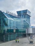Удобный современный аэропорт. Рациональное расположение служб и зон ожидания, торговли и др. Информативные указатели, по которым легко найти нужное место. Чисто. Удобное расположение поста для сдачи длинномерного багажа рядом со стойками регистрации: не нужно после регистрации везти багаж через весь зал, как в Пулково или Шереметьево. Есть курительная комната. Недостаток - узкие длинные лабиринтные подходы к стойкам регистрации из натяжных ограждений. Неудобно с длинномерными предметами (лыжами). Не было отдельной стойки для сдачи багажа зарегистрированными пассажирами, пришлось стоять в общей очереди.