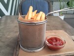 чудесная кофейня! поставила бы больше. решили перекусить на веранде, так как погода неплохая. играет приятная и спокойная музыка, по потолку идут множество гирлянд. приятный персонал, приветливая официантка, спасибо ей! отдельно хочу сказать про классический мохито, невероятно вкусный, но не приторный, как я люблю, никогда такой не пробовала. хрустящая картошка фри, свежий цезарь, тирамису и ароматный капучино. попробовала десерт «Шоколад-Апельсин», неплохой привкус, с пожеланием: «Улыбнитесь!». кафе очень хорошее, возьму на заметку, что повар отлично справляется с задачами. рекомендую к посещению!