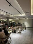 Были вечером во вторник, без брони, нашли местечко нам. Очень уютная веранда. Музыка приятная и не громкая. В заведении очень много молодежи, зуммеров 😁 и персонал тоже все молодые, но это никак не сказывается на качестве, даже наоборот. Нас проводили за столик, дали меню. Выбрали и по кнопке вызвали официанта. Девушка максимально вежливая и клиентоориентированная. Очень быстро принесли еду, буквально через 5 минут после заказа. Все было вкусное, а зная цены, вкуснее еще в два раза казались блюда 😁🤌🏻 Цезарь с курицей, две пасты, суп грибной, коктейль, кофе и чай обошлись всего в 1900₽. Подача и посуда тоже красивые. Коктейль не зашел, но конкретно этот вкус с розой, как шампунь по вкусу. Оплатить можно очень удобно по куару на столе. Туалетная комната оч фэнси, есть зеркала где можно сфоткаться.