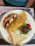 Сыр маасдам придаёт омлету насыщенный вкус. Петрушка добавляет аромат. Салат микс и томаты черри вносят свежесть