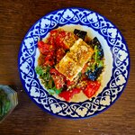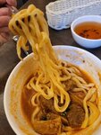 Вывод для тех, кому лень читать. В не самом гостеприимном углу центра вполне гостеприимное кафе с хорошей среднеазиатской кухней. Пятёрка. Мне его неоднократно рекомендовали, я, впрочем, не спешил - расположен в центре, но не очень удобно. Долго бы ещё не зашёл, но помог случай - в соседней пельменной на Моисеенко, на которую я возлагал большие надежды (две других точки сети получили от меня пятерки) не получилось пообедать - приходим, а в углу спит человек, что само по себе не ужас-ужас, но через буквально несколько секунд стало ясно, что от него ещё и запах по залу расходится, а это уже перебор экзотики. Вышли, пошли в "Плов #1". Тут два зала, в сумме человек 60 поместится - и в обеденное время в будни все места заняты, живая очередь на вход. В выходные днём смог хотя бы один угол снять без людей, в будни - без шансов. Кстати, если вы один сидите за столом-четверкой (что тут не запрещают), к вам может кто-то (спросив разрешения) подсесть (что тоже не запрещают). Оплата совершенно без экзотики - никаких рукописных табличек "наличные или перевод +7...", оплата картой есть и даже куаркод на каждом столе для счета-чаевых. (Правда, если к вам кто-то подсел и уже сделал заказ, то сумма по куаркоду привязана к столу и лучше платить за стойкой. В выходной, когда была не такая загрузка, официант приносит счёт и терминал). Меню восточной кухни, где почти одна лишь средняя Азия, хотя и страничка с хачапури есть. Плов - вам-то не надо перепробовать побольше, вам если нужен плов, то точно берите большую порцию, не среднюю. Большая 490₽ порция в 2 раза богаче мясом. Я ел среднюю порцию 410₽, чтобы все остальное в меня с большей вероятностью поместилось. Рис - шикарный, такого риса миску съел бы без никто, но на нем ещё порция жёлтой моркови из казана и нежная говядина. Ещё раз подчеркну - большой плов дороже всего на 80₽, но в два раза богаче по наполнению. Соленья 190₽ - красная капуста, огурцы и помидоры (именно соленые, без уксуса). Такую порцию солений был бы рад видеть с каждой шавермой нашего города. Манты 520₽ - 4 штуки в порции, сока мало, фарш с большой долей курдюка, но как будто всю сочность держит в себе. Бичак с сыром 350₽ - брат хачапури, напоминает его и тестом, и сыром. Начинка не спеклась в тонкую лепёшку плавленого сыра, а осталась нежной-трепетной. Лагман суп 460₽. Разнообразные овощи - и морковь, и сладкий перец (ну это база), зелёная фасоль, пекинская капуста (ну тоже бывает), и даже редька попалась. Но тут не инвестировали все в овощи, под ними не очень аккуратная, само-тянутая лапша и жилистые куски мяса, в которых жилы превратились в желе от долгой варки. Вкус насыщенный, но нет остроты. 5 с минусом. Пахлава - тот редкий случай, когда в реале блюдо даже лучше, чем в фотосессии для меню. Но, само собой, я ни кусочка не попробовал, орехи. Две порции взяли с собой, родственники хвалили, но от меня - без оценки.