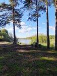 Добраться на легковой возможно только до глэмпинга, оттуда 1км по глинистой мешанине или лесной тропе, можно пешком, велосипедом, мото или вездеходом. Прогулка не долгая, но в сырую погоду грязная. Бывал здесь не раз, и с палатками ночевали шумной компанией, дров с избытком поляна большая, и почти всегда пустая. Пляжа как такого нет, не большая песочница, выход к воде в трове, водорослях и иле. В озере вода чистая, но темная. В этот раз был один, с сапом и спинингом, половил окуней, больше ни кто не откликнулся. Тишину в этом месте нарушает жд линия и насос давольно громко гудит, обратили внимание на это ночью, на сомой поляне достаточно чисто, мы забираем мусор с собой, как свой так и тот что находим на местах стоянок, все что можем унести, желаю и другим отдыхающим так же относится к нашей любимой природе и местам отдыха.