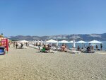 Были с детьми с 1 июля. Пляж чистый, мелкая галька. Нам было приятно ходить, хотя видела, что люди предпочитали резиновые тапочки. Вода чистейшая, прозрачная. Вход в воду удобный, никаких острых камней не было. Людей было не много. Есть кабинки для переодевания. Продаются напитки и мороженое. Туалетов нет. И душа я не увидела. Парковка свободная вдоль пляжа на набережной. Мы ставили машину ближе к церкви. Там всегда были места. Единственный минус- на тот момент нам не повезло-была холодная вода (природное явление-апвэллинг). Через несколько дней потеплела.