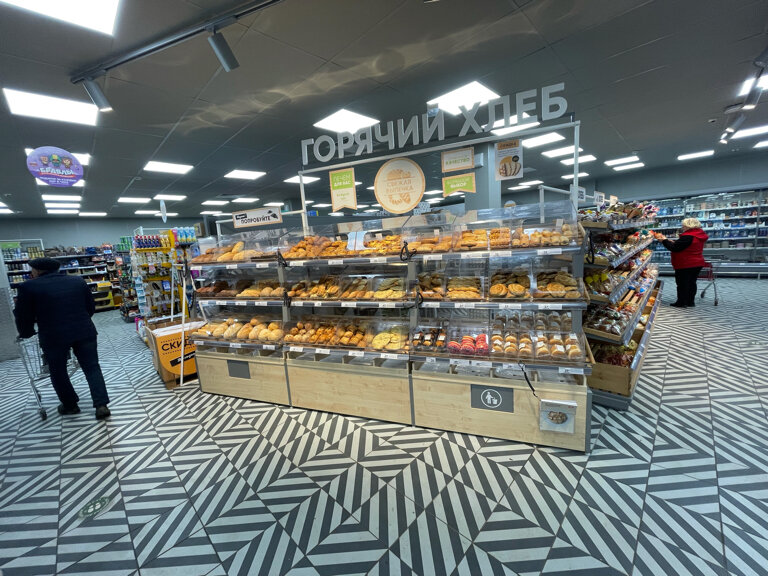 Большой, просторный магазин. Свежая выпечка, кофе. Вежливый персонал. Есть кассы самообслуживания, что очень удобно, когда в кассе очередь. Рекомендую.