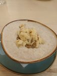 Пришли сюда на завтрак, остались разочарованы. "Каша с фруктами" Оказалась вообще без фруктов, когда я спросила, где они, официант сказал "сейчас исправим " И принесли мне вот такое. Я думаю должна было бы быть как-то более-менее сервированно, по крайней мере без почерневших бананов. Рисовую кашу тоже принесли без фруктов. Кавказский завтрак оказался неплох. Потом принесли кофе, красиво украсили, вопросов нет. Ждали счёт около 15 минут, потому что у них отключился компьютер.