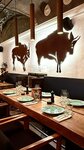 Из хорошего: мне понравился интерьер и вообще атмосфера, она тут, в лучшем смысле слова, демократичная. Чувствуешь себя уютно и в компании, и без. А еще интересно рассматривать мозаики над окнами, детали интерьера, и даже мясная лавка тут есть. Еще из хорошего – сервис, все всё успевают даже при полной посадке. Меню большое, специализация, понятно, на стейках и бургерах. Стейки девочки хвалили, особенно тот, который с шампиньонами. И десерты тоже симпатичные. А вот бургеры не особо удаются. Подгоревшие котлеты, ну, такое себе. Да и вообще какие-то грустные они на вид. И, с одной стороны, может это была случайность, но, с другой, - не позволительно для стейк-хауса. В общем, в самом ресторане мне понравилось, но бургеры больше заказывать не буду!