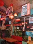 Зашёл мимо проходя по отзывам тут. Лапша по-сингапурски понравилась: большая порция, креветки большие и хорошо почищены. Взял набор из салатов, отметить из этого могу древесные грибы, тоненькие, с ненавязчивым вкусом. Ким-чи что-то не зашло (возможно, такой рецепт был) как и битые огурцы. По выбору напитков тоже не вау. В большом количестве чай разных форматов, но не по теме заведения. Ел на веранде: если вы любитель интерьера в виде сидений из поддонов и столов из пластиковых ящиков - вам сюда путь заказан). Как итог - ожидал бо́льшего по части всего, кроме основных блюд, есть над чем работать.