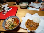 Заказывал рамен сею, салат с баклажанами, чай каркаде с маракуйей и личи, и жаренные бананы. 1. Рамен - вкусные бульон и курица, но лапша не подходит. Ее бы поменял. 2. Салат с баклажанами - очень вкусный. 3. Чай - понравился, но хотелось бы поменьше сахара. 4. Жаренные бананы - вкусный десерт и крахмала почти нет. Общее впечатление положительное, вкусная цена и недорого. И спасибо девушке на кассе, которая посоветовала чай)