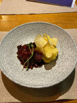 Понравился ресторан, нормальная порция мясного блюда, где есть мясо (томленая шея), тар тар из лосося интересный, но понравится тем, кто любит роллы/суши, тк сочетание вкусов с норм очень напоминает роллы((( офигенный десерт штрудель - кисло-острый десерт, неклассический.