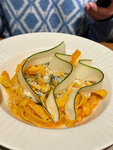 После завершения концерта Дианы Анкудиновой, который проходил рядом, в Доме офицеров, поздно вечером в воскресенье, без преварительного бронирования стола, зашли с супругой в этот ресторан. Оказалис тут впервые. Народу было немного. В зале было комфортно, благодаря дополнительно установленным тепловым пушкам. Респект ресторану за заботу о нас! Ели: - Шопский салат из свежих овощей с печеным перцем и болгарской брынзой; - Свежий хлеб на закваске с фермерским маслом и чёрным перцем; - Соте из морепродуктов со сливочно-копченым соусом; - Тальятелле с креветками, сыром грюйер и соусом из томатов; - Имбирный чай Обслуживание на высоком уровне. Персонал окружил нас заботой и вниманием. Зал небольшой, столы стоят близко к друг другу, и потому думаю в часы-пик тут будет не так комфортно, как в нашем случае. Время ожидания было незначительным, мы даже не заметили, скорее всего сказалось остутствие большого количества посетителей. В целом очень положительное впечатление! Получили удовольствие, наелись и удовлетворённые таким завершением вечера отбыли домой.