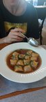 Когда вышли из него были сыты. Но удовольствия от пищи было мало. В помещении очень пахнет подвалом, в туалете ничем не пахнет, а зал прямо сильно пахнет. Меню без фото, и оно полностью авторское. Из 5 блюд вкусным был только суп с морепродуктами, остальное на любителя. В меню 3 супа, один из них, это пельмени с не очень вкусной начинкой, подаются с водой, в которой они варились. На горячее оба блюда были не очень съедобными. В общем хотели что то новенькое, зашли и больше никогда не вернёмся.