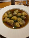 Была сегодня в ресторане Шенген. На первое был суп из говяжьих хвостов с тортеллини. Вкусный бульон. Тортеллини слава богу не назвали пельменями, тогда бы к ним у меня была масса претензий. А так нормально. И слишком большие. Разделить пополам ложкой, без риска разбрызгать бульон по всему столу, не получалось и рот приходилось открывать очень широко, неприлично широко для ресторана. Подача блюда приятная. Подаются на тарелке и заливаются при вас бульоном, который зачем то называется супом. На горячее был томленый говяжий язык с жареным картофелем и трюфельным маслом. Язык прямо таял во рту и запах трюфеля в соусе был прекрасен. Картошка ни о чем. Вообще. Непонятно, как можно было так невкусно сделать картофель. И на десерт яблочный штрудель с лимонным сорбетом. Сорбет был очень вкусный. Штрудель на тройку. Корка теста и внутри что то невнятное. Сорбет пытался его спасти, но не мог. Волшебства не было и рядом. Не случилось. Подача очень красивая. Потрясающие цветочки были очень к месту. Мне очень понравилось обслуживание. Девушки работают прекрасно, выше всяких похвал. Внимательные, все делают вовремя, отлично советуют, что выбрать в меню. Их ровно столько, сколько должно быть. Девушки, вы большие умницы! Посетителей было много. Музыки не было, мне кажется. Уровень шума низкий. Интерьер приятный. Ресторан однозначно достоин посещения. Но чудес не ждите.