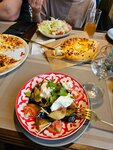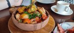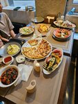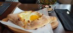 Нам понравилась еда. Хачапури по-Аджарски очень сочный, сырный до самых кончиков, с интересным сыром. Салат по-грузински с орешком и каким-то вкусным соусом очень понравился. Жаркое с курицой принесли прямо с пылу с жару тоже было вкусно! Чай зеленый с мятой и корицой интересное сочетание, казалось бы не сочетаемое, но нам очень понравился такой чай. Дома сделаю тоже с корицой и мятой)) Внутри все чисто. Хорошая уборная. Только в кране горячая с холодной перепутаны, классика)) Открылись недавно, мы спрашивали, в январе. Пока пустовато, меню на листочке, не хватает какого-то декора и возможно зелени. Но, думаю, наверстают. Чтоб вкусно пообедать рекомендую зайти.
