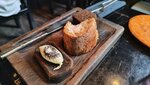 Это вкусное место, я посетила вчера, а решила я его посетить, посмотрев рекомендации на канале Москва 24. Для меня даже провели мини экскурсию по ресторану из которой я поняла, что главные в этом ресторане-это печь и хлеб собственного производства, как говорится, Хлеб-всему голова, его здесь подают в качестве комплимента от заведения. Светильники в помещении светодиодные, с имитацией свечей, посуда ручной работы, а в меню интересные авторские коктейли и лимонады. А я вчера выбрала для своего праздничного обеда Камамбер в золе на маковой бриоши, креветки из печи с зеленым чили, слива с копченым мороженым.