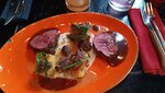 Давно хотела попасть в этот ресторан, но оказалась совершенно случайно, когда прогуливалась с подругой. "А пошли?" "Пошли" Классное атмосферное пространство, парящие свечи - топ, приятное обслуживание и восхитительная еда. Пробовали эклеры с крабом, запеченный камамбер, говяжьи щёчки и вырезку со сморчками и творожное кольцо на десерт. Все вкусы продуктов будто созданы друг для друга, переплетаются в одно целое когда оказываются на языке. Это очень, очень вкусно. Но все таки фаворитом вечера для меня стал камамбер, подружке больше запомнились эклеры. Из небольшого минуса - было тесновато сидеть у окна справа от кухни. Постоянно тёрлись спинами то об стену с моей стороны, то об спину другого гостя со стороны подруги.