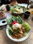 Прекрасное стильное местечко с видом на церковь и очень конкурентоспособными ценами по сравнению со всеми соседями вокруг. Владеет Ксения Собчак и команда Wrf. Еда, как говорит шеф Ивлев, нажористая, с яркими вкусами, вкусовые сосочки с мозгом и глазами наслаждаются, но некоторые блюда жирные, это пицца, брали фирменную She (от пиццы хотелось бы легкости) и равиоли с буратой и трюфелем, вкус сырого теста, утопает в жирном соусе, бурата видимо хороша только без тепловой обработки, вкус сыра стал странным. Паштет из утки с сухофруктами идеальное сочетание. Салат с креветками и поке с курицей робата были легки и очень вкусные. Кроме пиццы и равиолей остальное очень вкусно. Десерт с муссом из белого шоколада и инжиром отличный, лучший на мой взгляд из всех остальных. Понравилась работа хостес, с понимаем и без скепсиса отнеслись к перемене нескольких столов и посадили за стол у окна как мне хотелось, когда он освободился. В общем, вышли довольные, сытые, но с чувством тяжести. Желаем побольше легкости в блюдах!
