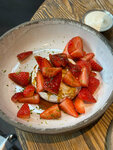 Наше знакомство с рестораном SHE на Большой Никитской началось ещё давно — мы отмечали здесь день рождения, проводили собрания и частенько сидим на летней веранде, особенно по ночам, когда действует специальное меню. Веранда отличная: уютная, атмосферная, идеально подходит для ночных посиделок. Единственный минус — шум от машин на улице. Было бы здорово, если бы он не мешал наслаждаться вечером, но это уже не к ресторану претензия :) В этот раз пришли попробовать новое июньское сезонное меню с клубникой, которое разделено на два блока: «Худеющим» и «Во все тяжкие». В «Худеющим»: • тартар из креветок с клубникой, фенхелем и алоэ-юдзу — 750 ₽. Первый раз пробовали тартар из креветок, очень понравился, идеально сбалансированный вкус, алоэ-юдзу здесь просто на высоте; • салат с клубникой, яблоком, цукини и козьим сыром — 750 ₽. Взяли сразу два, один даже забрали с собой; • камамбер с клубникой и лимонным мисо — 890 ₽. Великолепное сочетание, необычно и очень вкусно. В «Во все тяжкие» (десерты): • моти с клубникой и пломбиром — 250 ₽; • клубничный тарт с белым шоколадом — 650 ₽; • рисовый пудинг с клубникой и алоэ-юдзу — 650 ₽. Как рассказал официант, это блюдо вернули по просьбам гостей, и это было отличное решение — десерт нежнейший, все ингредиенты отлично сочетаются. В целом впечатления только положительные — кухня на высоте, сервис внимательный, атмосфера прекрасная. 10 из 10, и точно вернёмся снова!