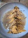 Мое первое знакомство с альянсом WRF. Не разочаровало:) Равиоли с бурратой и черным трюфелем выше всех похвал! Очень нежно и вкусно. Однозначно стоит пробовать. Стоит отметить, что подача пасты была «правильной»: тарелка была нагрета, что не позволяло блюду остывать. Роллы с тунцом хорошие, пицца с курицей под соусом терияки — шик. Десерт)) Отдельное место в сердечке — панна-кошечка (ананас). Не приторно сладко, воздушно. Подушка из пены напомнила кислородный коктейль , который я безумно любила в санаториях, будучи ребенком) В сопровождение брали белое вино Pinot Grigio, Corvezzo / Paddle Creek Sauvignon Blanc. Впечатления от места исключительно положительные.