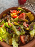 Заехали на ужин, заказали харчо, долму, почти все виды хинкали, салатик с баклажанами и уз вар. Первое подали очень быстро, вкусная основа но мясо было жестким, не буду снижать за это оценку, тк остальные блюда с лихвой перекрыли этот недостаток. Интересные сезонные хинкали с мидиями, вкусно! Очень хорошие впечатления от сытной и вкусной еды! Обслуживание вечером пятницы было очень быстрое, в обед в субботу немного подождали, тк была полная посадка, но все равно оперативно! Молодой но опытный персонал, очень милый и приветливый!