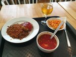 Ценник на одного 250-350 руб! Для детей тоже будет хорошо, есть семейные столы, еда безопасная и хорошо проготовлена. Очень вкусно, хорошие порции 👍 очень вкусные супы, рекомендую! Есть винишко 🍷 холодное в розлив ( надеяться на элиту не стоит - Российское, но очень даже ни чего) Расположена в центра города, кушают как гости города так и сотрудники офисов, я хожу почти каждый день туда, когда работаю на верхушке рядом. Еда высого качества, сотрудники очень вежливые и могут помочь с выбором, обслуживают быстро. В заведении часто очереди, так как и вкусно и дешево. Стоит расчитвать, что с 12-13 в будни, много местных и сотрудников из офисов . Для людей с ограниченными возможностями помогли выбрать то что хочется, а человек сел за столик с собакой повадырем.