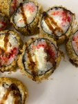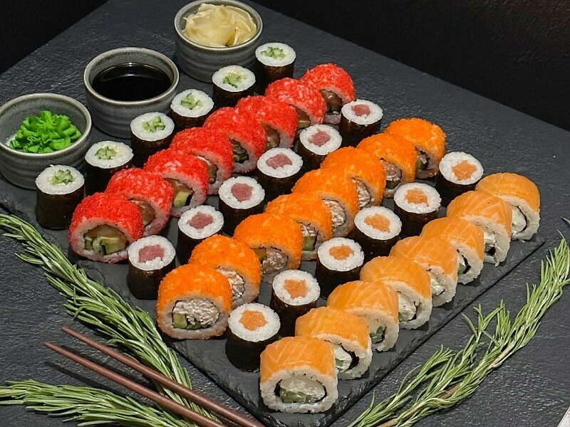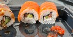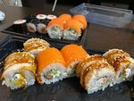 Заказали доставку. Ничего общего с фото на сайте: внутри огурец вместо авокадо, никакой икры сверху, лосось пресный, горчит, дофига риса. Соевый соус один на 2 персоны положили. Невкусно. Не советуем!
