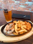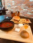 Отличная подача блюд в красивой посуде на деревянных досках. Заказали куриный бургер с картошкой фри (+луковые кольца и соус кетчуп), купаты с капустой и картофелем, борщ, фирменное пиво. Отличительная особенность хороших ресторанов, как этот — мягкое и сочное мясо. Летнее открытое пространство с фонтанчиком и оформлением под пиратский стиль, а также прекрасные растения придают великолепный шарм и поднимают настроение. Приятный и вежливый персонал. Также подали настойки в подарок от заведения. Обязательно к посещению любым туристам Зеленоградска