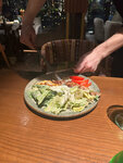 Новое заведение от создателя The БЫК. Были в воскресенье вечером небольшой компанией, свободный стол нашёлся сразу, хостес была вежлива и компетентна. Дизайн и устройство зала очень напоминают The БЫК, но в который добавили кавказской атмосферы. Мне понравилось, тут приятно находиться. Перед походом в ресторан ожидал просто неплохой грузинской кухни, но, скажу честно, многие блюда были на высоком уровне. Запечённый баклажан веер - мой фаворит, хорошо запечённые баклажаны и томаты, много хорошего тянущегося сулугуни, очень удачное сочетание специй и зёрнышки граната, которые здесь уместны. Ещё одной приятной неожиданностью стали лимонады - мы заказали два (саперави и крем-сливки). Лимонады они делают сами. Оба имели насыщенный и яркий вкус. Пожалуй, это лучшие саперави и крем-сода в моей жизни (уж точно не хуже известного Натахтари, который обычно подают в грузинских ресторанах). Грузинский салат с курицей я тоже оцениваю высоко: вкусный соус, отличная идея с жареным сулугуни и интересная подача куриного бедра на шампуре прямо в тарелке (само мясо мягкое и вкусное). Хачапури по-аджарски среднее по размерам, но вкусное, придраться не к чему. И, пожалуй, самое известное блюдо грузинской кухни - хинкали. Что можно сказать про них? Они просто неплохие, я ел вкуснее, но эти хороши, просто не супер. Обслужили нас достаточно быстро, официанты были доброжелательны. Итого, учитывая демократичный ценник, этот ресторан можно назвать очень хорошим. А уж тем более, если прийти в будний день на "безлимит" за 600 рублей. Рекомендую.