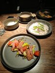 В целом заведение понравилось, для своих цен отличное. Хорошее обслуживание, есть кнопка вызова официанта и qr для закрытия счета. Салат с ростбифом и карпаччо понравились, десерт the pivo и американо тоже. Мохито не очень, нет насыщенного вкуса. Бизнес-ланч с крохотными порциями, особенно второго блюда. Пиво неплохое. В некоторых блюдах напишут длинные состав, в итоге в карпаччо вяленых томатов не нашли, в салате с куриной грудкой ее почти нет, в севиче манго нет, или манго это соус? Интерьер красивый, туалеты чистые. Меню в общем небольшое, может, заказали бы ещё чего-нибудь, но взгляд ни за что не уцепился.