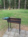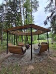 Хорошее место для отдыха. Действительно тихое. Смешанный лес, рядом водоём. Бревенчатые домики, шишки, птицы. Территория охраняемая, авто можно оставить возле сторожки, при въезде. Парковочная зона небольшая. Удобная локация. Находится недалеко от города, 5 минут от Лося, от Якшур-Бодьинской трассы, где ездит городской 56-й автобус и маршрутки. Брали в аренду на 20-ть человек беседку-шатёр (тент), вместительная. Внутри: столы, стулья, скамейки, 2 розетки, остается место для танцпола. Возле него бак под мусор, мангал с опахалом. Из минусов, нет рукомойника поблизости, нужно бегать до уличного туалета или иметь запас воды. Везде указатели, туалеты расположены по всей территории комплекса, чистые. На территории есть качели (детские и взрослые), много скамеек, горки. Живёт живность: кошки, собаки (на привязи). Из минусов, на виду стоят старые полуразрушенные дома. Также брали в аренду дом. Сам дом на 2 номера (разные крылечки), веранда (с пластиковым столом и стульями с пепельницей). Номер оснащён необходимой бытовой техникой (холодильник, микроволновка, эл.чайник, телевизор), можно попросить утюг с гладильной доской. Есть Wi-fi. Из минусов, нет кондиционера. Обеденная зона оснащена столиком и двумя стульями, посудой (кружки, тарелки, ложки, нож), можно попросить открывашку, штопор. Санузел совмещённый (открытая душевая кабина), Напор воды хороший. Водонагреватель. Есть мыльные принадлежности. Из минусов, нет фена. Вода также выведена на улицу (кран). Её можно использовать, как питьевую. Возле домика мангал. Угли и розжик можно приобрести. На территории также есть гриль-зона (скамейки+мангал), можно аредовать. К водоему (пирсу) я не спускалась, описать не могу. У комплекса есть сайт, где можно посмотреть описание и узнать подробнее об оказываемых услугах. Описание на сайте соответствует действительности. Рекомендую для любителей уединиться, пар, семейного отдыха и туристов. Там можно разбить лагерь из палаток и остановиться автодомом.