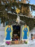 На праздники много народа, очень тесно в церковной лавке. Храм не до конца отремонтирован, но камеры видеонаблюдения уже стоят. Зелёная территория. И вкусная местная выпечка