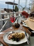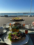 Море, кофе... И пусть весь мир подождёт))) У меня было настроение Ризотто, выбор дочки был сделан в пользу куриных стрипсов и конечно же десерта) Вкусно кушать около моря - это особенное удовольствие. Уютное место, внимательный, вежливый персонал. Спасибо, вернёмся к Вам снова!)