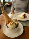 Не понравилось совершенно. Очень медленное обслуживание, кофе принесли отдельно от десерта, десерт ждали 10 минут, кофе остыл, попросили заменить, опять несли очень долго. Коктейль заявлен был с локальными фруктами - клубникой. Принесли приторное, без льда, без клубники. Плюс - чистый туалет и неплохое тирамису, вид. Но больше не вернемся.