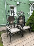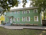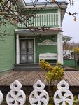 Дом с прекрасным двориком утопает в зелени, есть скамеечки и резные стулья, качели. Навеивает Тургеневской порой. Двухэтажный дом, на первом сувенирный магазин, можно посетить бесплатно, на второй входной билет 50₽. Самобытные выставки из дерева и природных материалов. Красиво. Рекомендую.