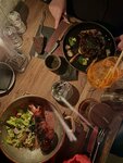 Были здесь с мамой в выходной вечером. Полная посадка. Очень долго ждали официанта: хотя пришли раньше соседнего столика, их обслужили заметно быстрее — они уже ели, а к нам только подошли принять заказ. С оплатой счета тоже пришлось ждать. Из-за большого количества людей чувствовалась суета и напряжение вокруг — мне такое не очень комфортно. В ресторане темно: свечи, полумрак. Атмосферно, но читать меню сложно. Из приятного — очень вкусный хлеб в качестве комплимента и отличный красный чай. Основные блюда были нормальными, но желания повторить нет. Атмосфера показалась скорее клубной: громкая музыка, что-то электронно-этническое. В целом опыт получился неоднозначным.