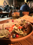 Ворон & Ворон - потрясающее место для тех, кто ценит антураж, хорошие напитки и шаманскую музыку. Меня, как ценителя изделий из природного материала покорило изобилие и разнообразие ловцов снов из кожи, дерева и зубов животных, а также проработанность антуража в баре, туалете и входной зоны. Даже зона касса гармонично вписывается в него, не притягивая к себе взглядов. Поскольку мы уже пришли сытые, то дегустировали в основном наливки и пиво. Пива немного, а вот наливок и коктейлей очень много. От самых классических до странных - свекла, морковь, хрен, мята, лечо и так далее. Подача наливок особенно порадовало - железное дерево с местами для бокалов. Вау! Работа персонала чёткое и быстрое. Грязную посуду быстро убирают, быстрая подача еды и хорошая консультация при выборе. В конце вечера каждому гостю предлагается завязать ленточку и загадать желание, раз в период их забирает шаман и проводит обряд, так говорят. Но верить или не верить - дело каждого. Остались лишь положительные эмоции!