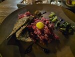 Приятное заведение с необычным оформлением и крутейшей Коктейльной картой. Приятный и общительный персонал, обслуживание быстрое и вежливое. Цена средняя, для центра города весьма вменяемая. Кухня не самый главный конёк этого заведения, но и голодным точно никто не останется 😁. Основная фишечка это настойки с тапасами и конечно же коктейли коих большое количество и они необычные и вкусные, так что готовьте печеньки хорошее настроение для посещения этого места. Нам лично очень понравились сэты с тапасами на подносиках, продегустировали почти все несладкие настойки. Тартар из говядины 🥩 весьма неплохой, правильная консистенция, нежный без жилок. В целом посещением данного заведения остались очень довольны, смело рекомендую 👍.
